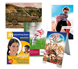 Vállalkozásunknak évtizedes tapasztalata van a legkülönbözőbb reklámanyagok tervezésében és előállításában, mint újsághirdetések, szórólapok, óriás plakátok vagy akár az eladáshelyi promóciós anyagok (displayek, wobblerek, promóciós polccsíkok vagy megállító táblák).