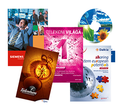 Cégünk évtizedek óta tervez, tördel és kivitelez céges kiadványokat, prospektusokat. Legyen ez akár egyoldalas szórólap, kis példány számú hírlevél netán exkluzív kialakítású fóliázott, formalakkal ellátott üzleti prospektus vagy éves jelentés. Nagy gyakorlatunk van mese- és tankönyvek tervezésében tördelésében és borítótervezésében, tartalomjegyzék szerkesztéssel, lábjegyzetekkel és PDF korrektúrával együtt.