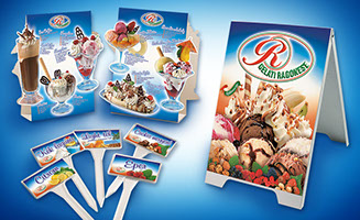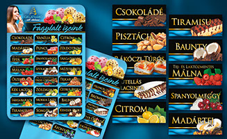 Ragonese fagylaltozó íztábla és cimkék tervezése